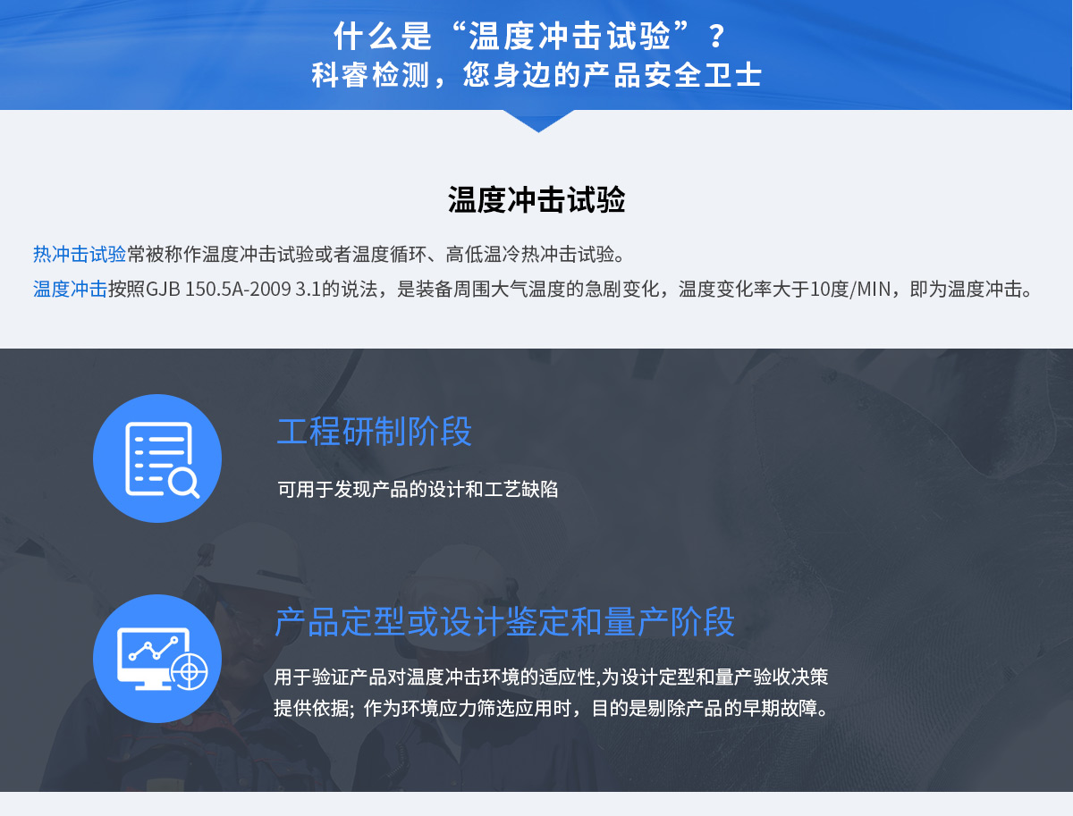 科睿溫度沖擊測試采用專業高低溫濕熱試驗箱,以其實用性、精準性、專業性使溫度沖擊實驗更趨簡單和高效,快速檢測出您的產品在溫度沖擊試驗的情況下,所呈現的綜合性能指標,形成完備的檢測分析報告,讓檢測結果更精準,更專業,更科學,更規范。
