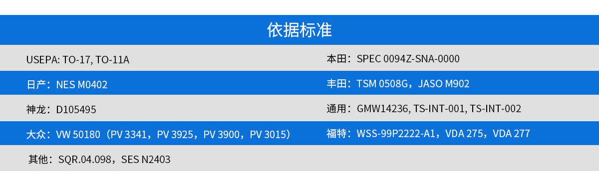 “汽車VOC測試”包含車內空氣VOC測試、汽車部件VOC測試、汽車材料VOC測試等。